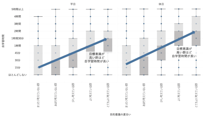 進路に対する目的意識の有無と自学習慣の相関性を示唆