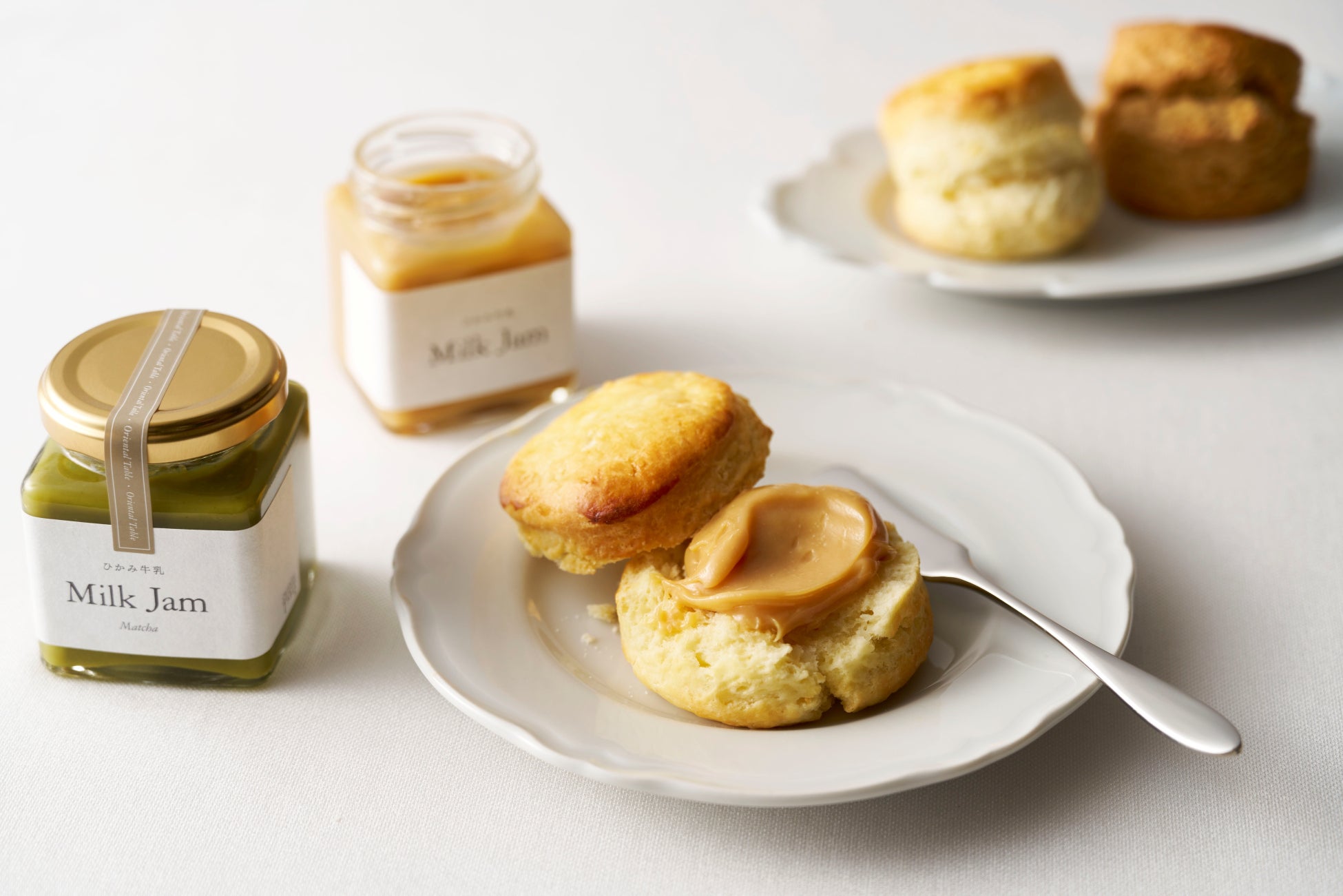 ホテルメイドのクオリティにこだわり、素材の味を生かす豊かな風味を追求した食品・飲料を取り揃える「ORIENTAL TABLE(オリエンタルテーブル)」の新商品ミルクジャムは、洋菓子の街として有名な神戸・元町の地で“日本で初めての完全手づくりのミルクジャム専門店”としてスタートした「patisserie AKITO」とのコラボレーションによるオリジナル商品です。保存料や着色料を一切使用せず、大きな銅鍋で2時間かけてじっくり煮詰めた牛乳を用いて一つ一つ丁寧に手作りされており、材料や作り方がシンプルだからこそ配合のバランスや火加減の調整、炊きあがりの見極めなど、職人の感覚や技術が求められる逸品です。フレーバーは、牛乳の芳醇な香りが堪能できる“プレーン”に加えて、「ORIENTAL TABLE」のティーシリーズで一番人気の茶葉を使った“アールグレイ”、創業天保年間の神戸・元町の老舗茶舗「放香堂」の茶葉を使った“抹茶”の3種を展開いたします。