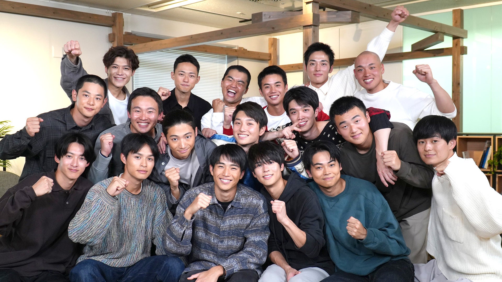 今回集まったのは、球児役を勝ち取った12人、中沢元紀、兵頭功海、伊藤あさひ、⼩林⻁之介、橘優輝、⽣⽥俊平、菅⽣新樹、財津優太郎、鈴⽊敦也、福松凜、奥野壮、絃瀬聡⼀、そして、オーディションには落選したが見事“下剋上”を果たしてドラマ出演した6人、柳谷参助、中山翔貴、青山俊雄、羽谷勝太、清谷春瑠、新浜レオンの全18人です。全員が同じ場にそろうのは初めてとのことで、オーディション中やドラマ撮影中の秘話など、たくさんの貴重なエピソードが語られる座談会となりました。