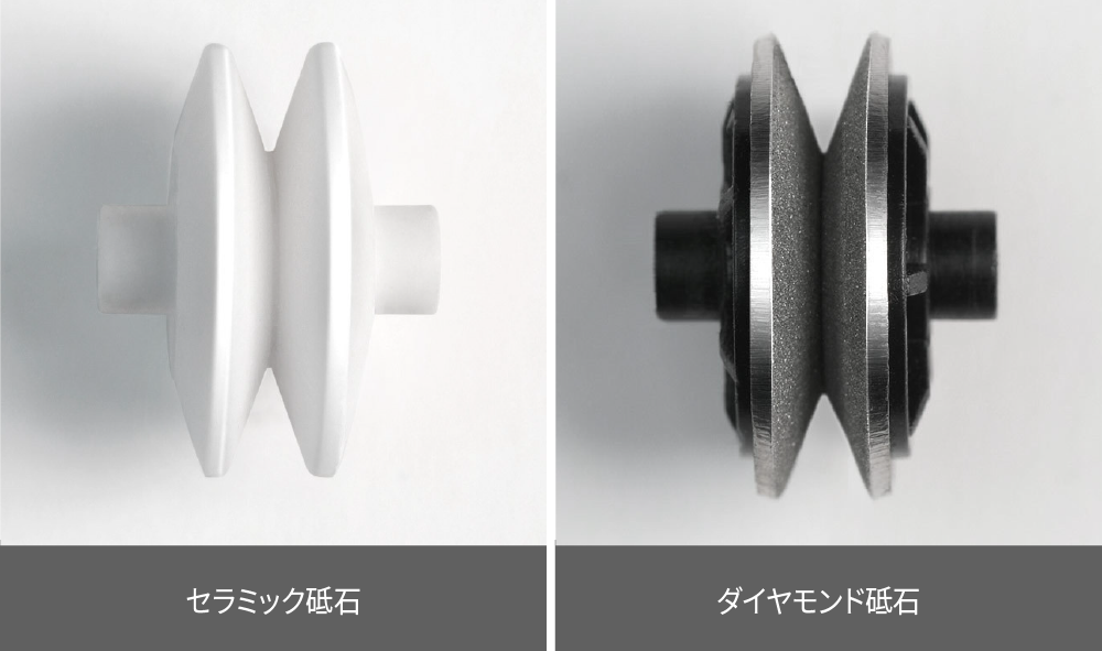 ②仕上げ用【セラミック砥石】:鋭く滑らかな刃先に仕上げます。