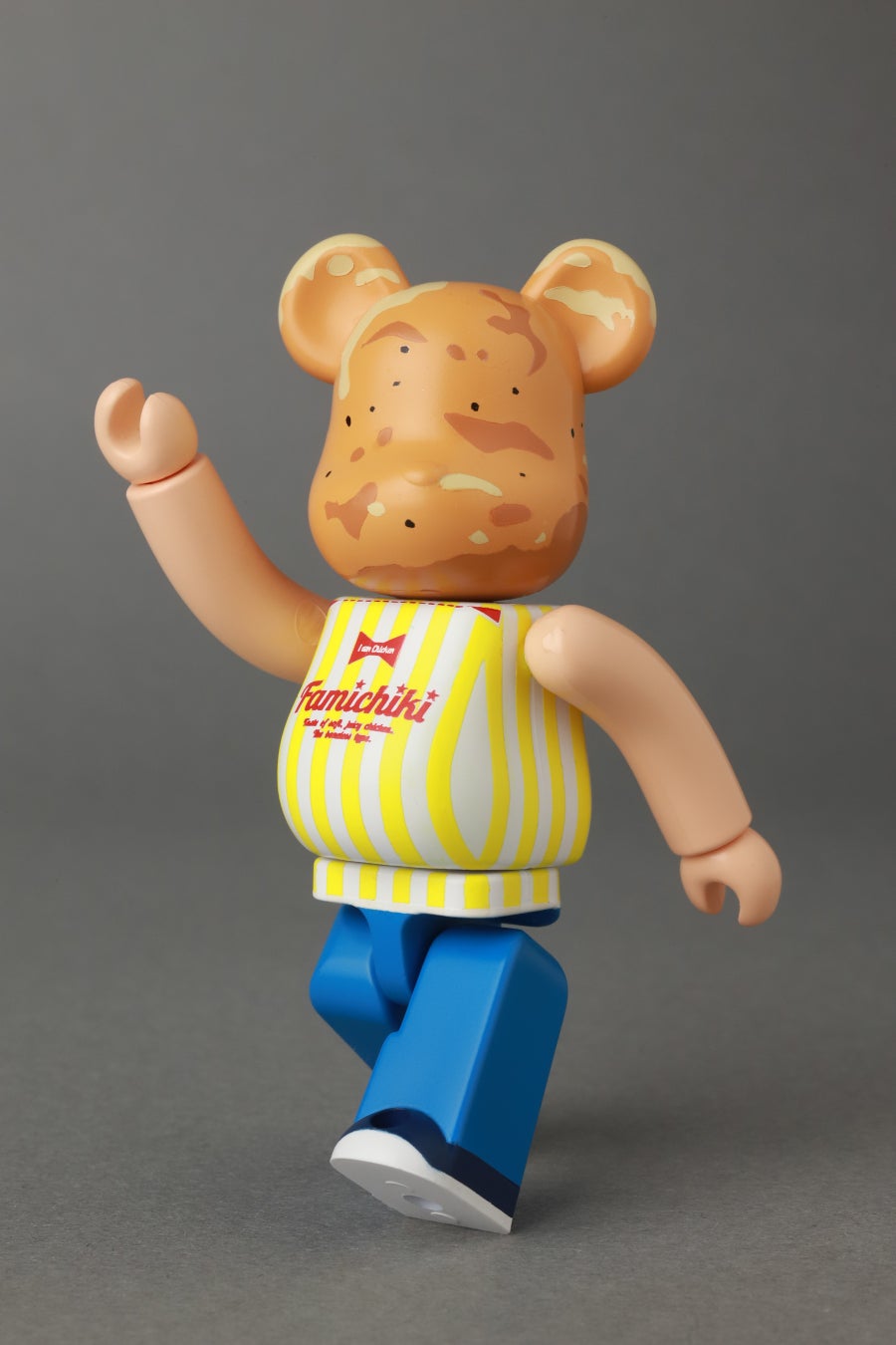 100%(全長7cm)のBE@RBRICKになります。頭はファミチキ柄、胴体はホットスナック袋(以下、ファミチキ袋)をイメージしたデザインです。