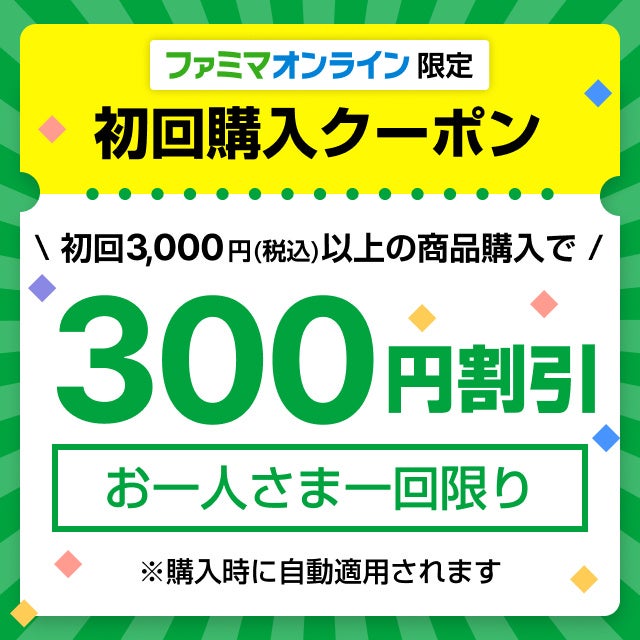 ファミマオンラインで初回3,000円(税込)以上購入時に使用できる300円引きのクーポンを、お客さま全員に配信いたします。