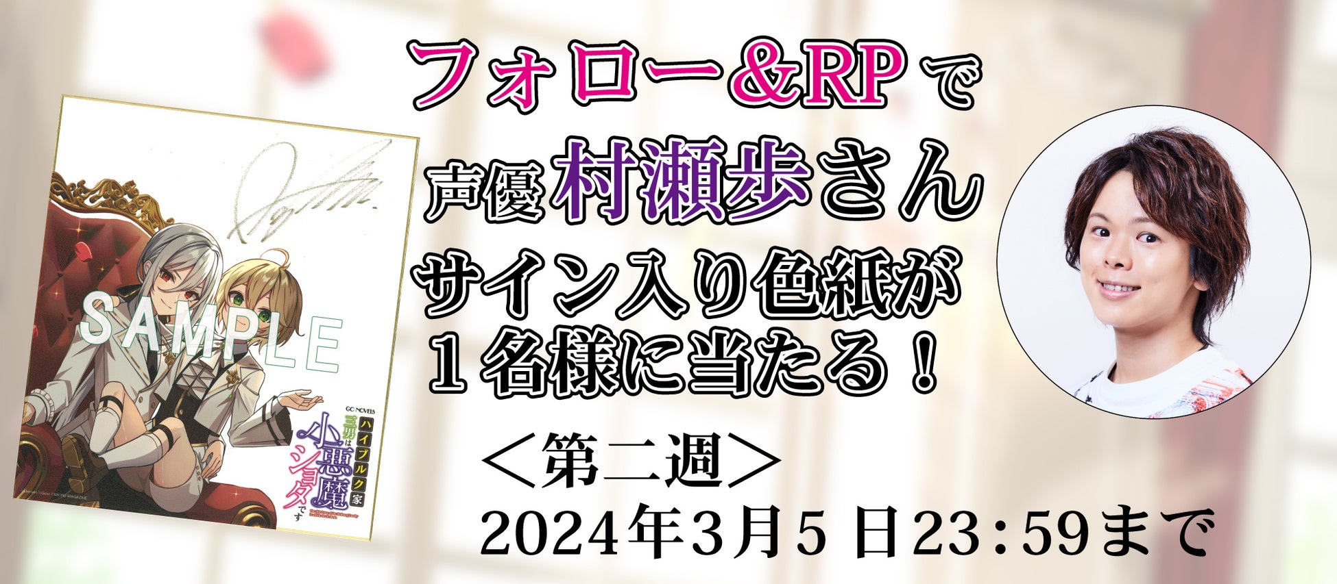 作品公式Xでは、村瀬歩さんのサイン入り色紙が抽選で当たるキャンペーンを2週連続で開催!