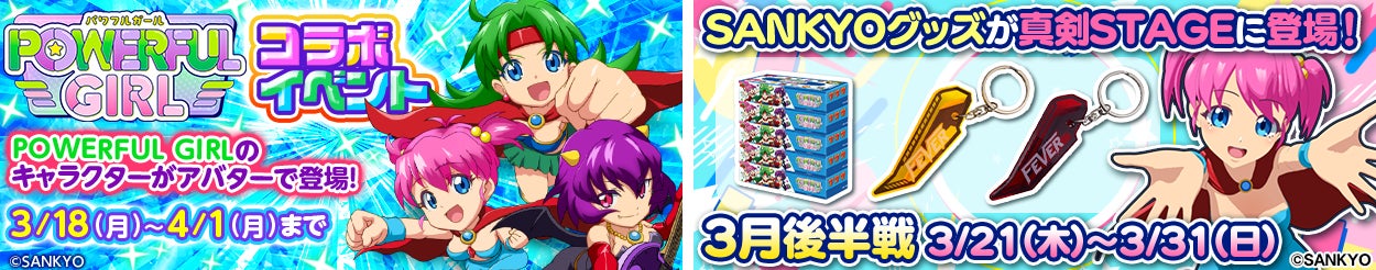 さらに「真剣STAGE」には3月後半戦(3月21日~3月31日)、4月前半戦(4月1日~4月10日)、4月中盤戦(4月11日~4月20日)の景品にSANKYOグッズが登場!