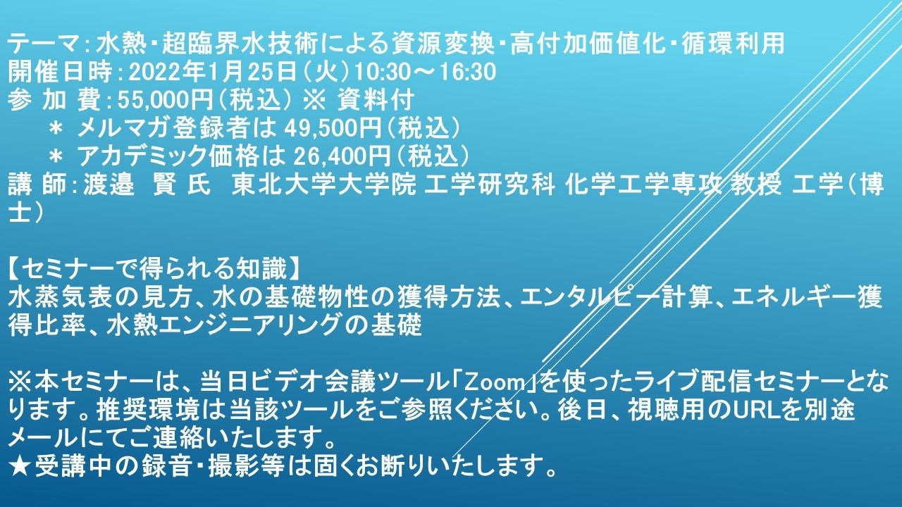 【ライブ配信セミナー】水熱・超臨界水技術による資源変換・高付加価値化・循環利用 1月25日(火)開催 主催:(株)シーエムシー・リサーチ