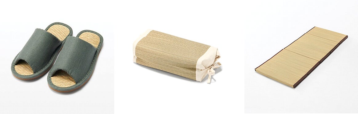 イ草を使ったアイテムは、2000年より季節限定で販売している無印良品のロングセラーです。当初スリッパやラグ、まくらからはじまり、さまざまな暮らし方に対応する商品として徐々にアイテムが増えてきました。