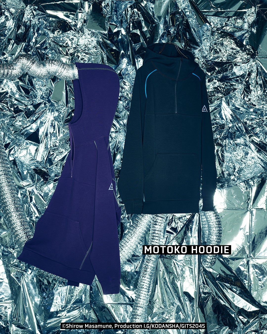 舞台となる近未来の街並み、デジタルな光彩、キャラクターが持つ曖昧な心情や希望をコラージュや素材のコンビネーションで表現し、カラーリングをモノトーンで統一することでよりモード感を引き立たせているため、『攻殻機動隊 SAC_2045』のファンは勿論、ファッションフリークにも楽しんでいただけるコラボアイテムとなっています。