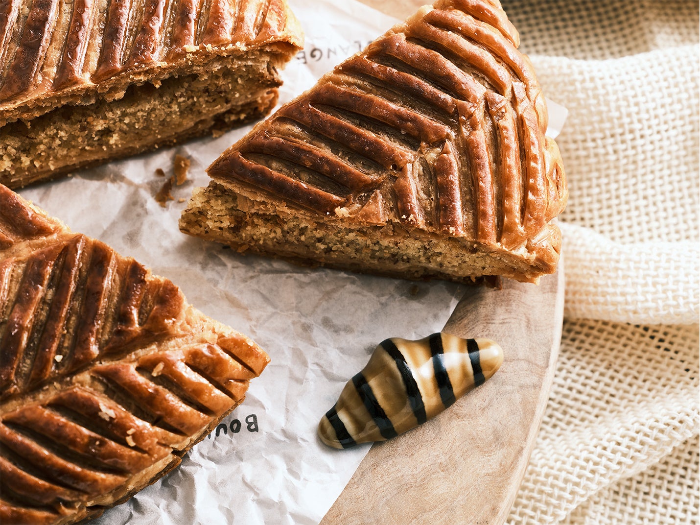 フランスで公現祭(エピファニー)に楽しむ伝統的な焼き菓子として新年の食卓に並び、”王様のお菓子”の愛称で親しまれている「ガレット・デ・ロワ」。切り分けたピースから、パイの中に忍ばせた幸福のフェーブが当たった人は、紙の王冠をかぶり、その日1日王様としてテーブルを囲む人々から祝福を受け、さらに1年が幸せに過ごせると言われています。