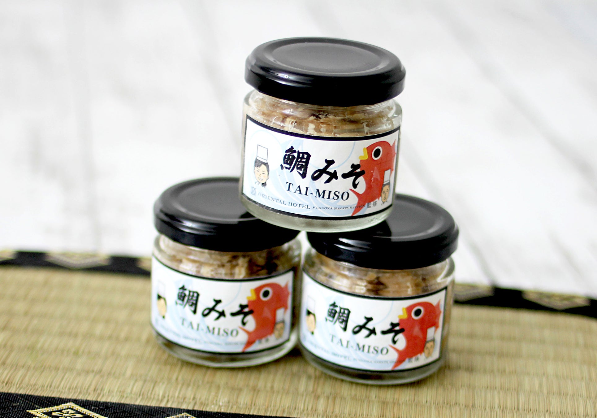 また焼き鯛めしの出汁茶漬けのトッピングで使用している当ホテルオリジナルの「鯛みそ」を店内で販売しております(税込900円)。ご家庭でのご飯のお供に鯛の旨味が凝縮した鯛みそはいかがでしょうか。