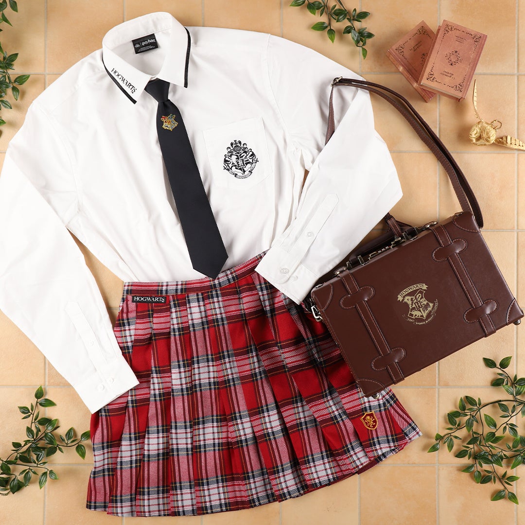 さらに、スカートと相性抜群のシャツが同日発売。左胸と襟元のエレガントなデザインの刺繍が魅力的です。ホグワーツ生気分を味わいながら、シンプルな作りなので普段使いもしていただけます。