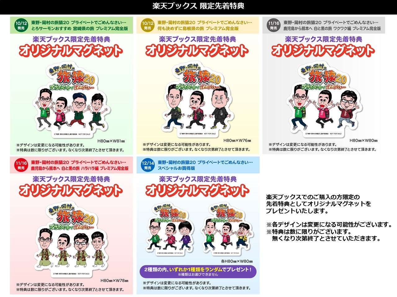 <旅猿20DVDシリーズ最新作>東野・岡村の旅猿20 プライベートでごめんなさい…プレミアム完全版 DVD発売決定!10月12日(水)より発売開始!