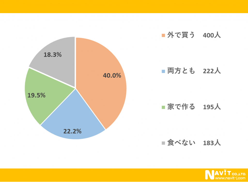 「焼き芋は買いますか?家で作りますか?」という質問については、「外で買う」が40.0%、「両方とも」が22.2%、「家で作る」が19.5%という順になりました。