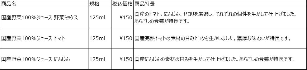 なお本商品は、国産野菜にこだわった野菜ジュースとしてはお求めいただきやすい価格で提供し、単品での販売に加え、店舗、ネットストア共に30本入りの箱でも販売いたします。