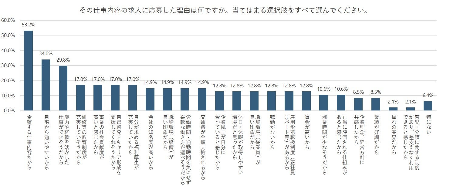 「希望する仕事内容だから」53.2%、「自宅から通いやすいから」34.0%、