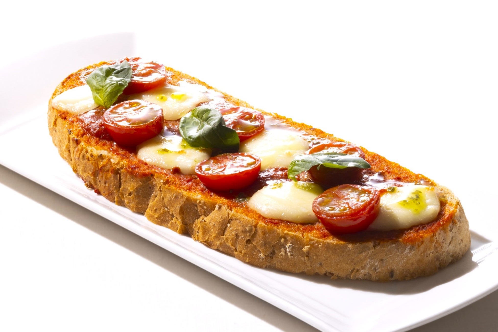 ●ライ麦パンとトマト、モッツァレラチーズのタルティーヌ・カプレーゼ ¥800(税・サ込)