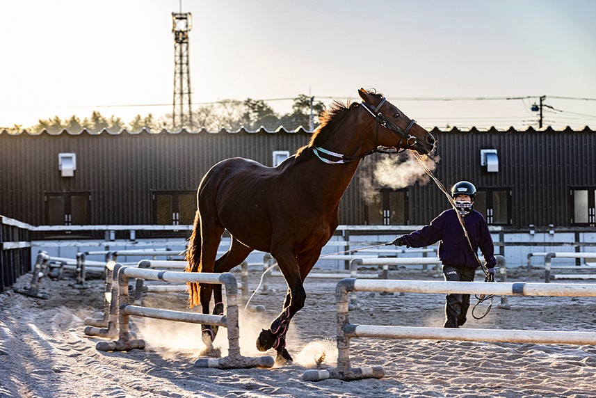 乗馬クラブは“初老ジャパン”を輩出したクレイングループが運営する「乗馬クラブ クレイン千葉 富里(ちば とみさと)」を訪問します。元競走馬を中心に名馬の子孫を含む約100頭の馬が暮らしており、それぞれの厩舎の前には過去の受賞タイトルが掲げられ、訪れるだけで馬たちの歴史を感じることができます。