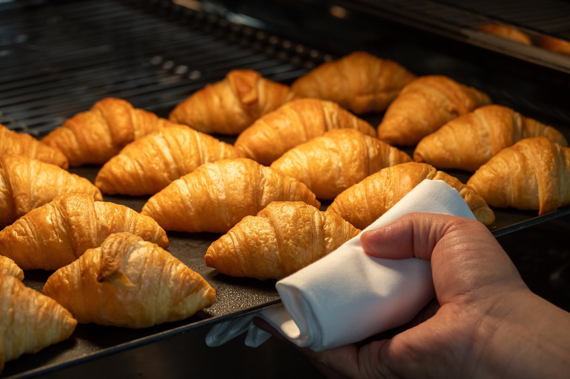 ・焼き立てパン3種(クロワッサン、チョコデニッシュ、レーズンデニッシュ)