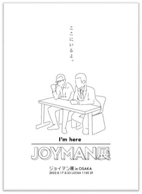 この度、2022年8月17日(水)から8月23日(火)まで大阪・梅田にある、LUCUA1100 2階イセタン アーバンマーケットにて、ジョイマンの展示イベント『ジョイマン展 in 大阪』の開催が決定しました。