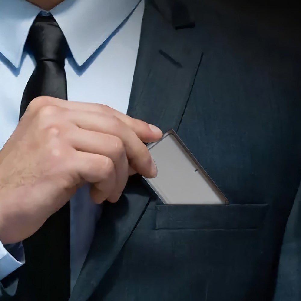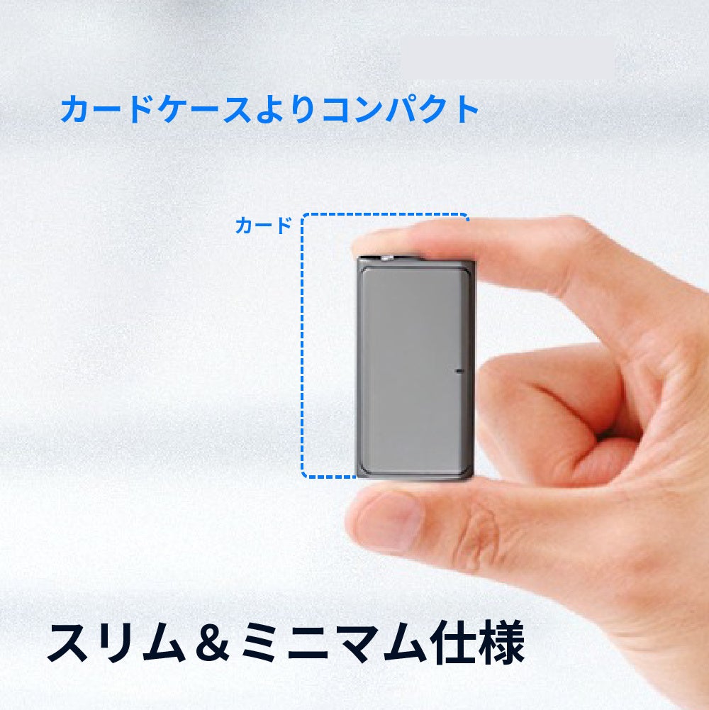 スーツの胸ポケットなどにも入るサイズで、カードケースよりもコンパクトなスリム形状。