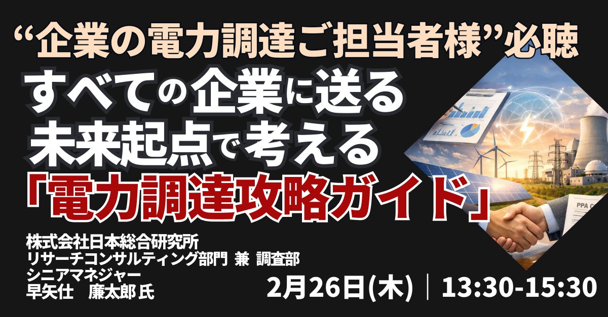 【JPIセミナー】「すべての企業に送る 未来起点で考える ”電力調達攻略ガイド”」2月26日(木)開催