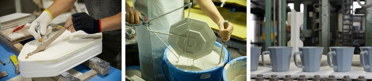 今回、そんなラコレのテーブルウェアがどのように作られているのかを、多くの方に知っていただきたいという想いから、石川県、岐阜県、福井県、新潟県の各地域の生産工程を店頭・特設サイトにて公開します。