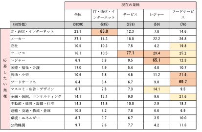 【図6】現在の業種別 応募したい業種