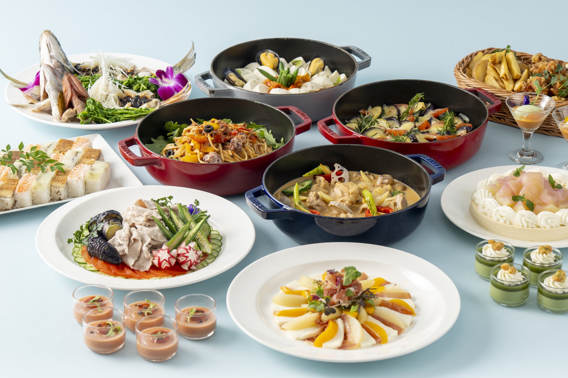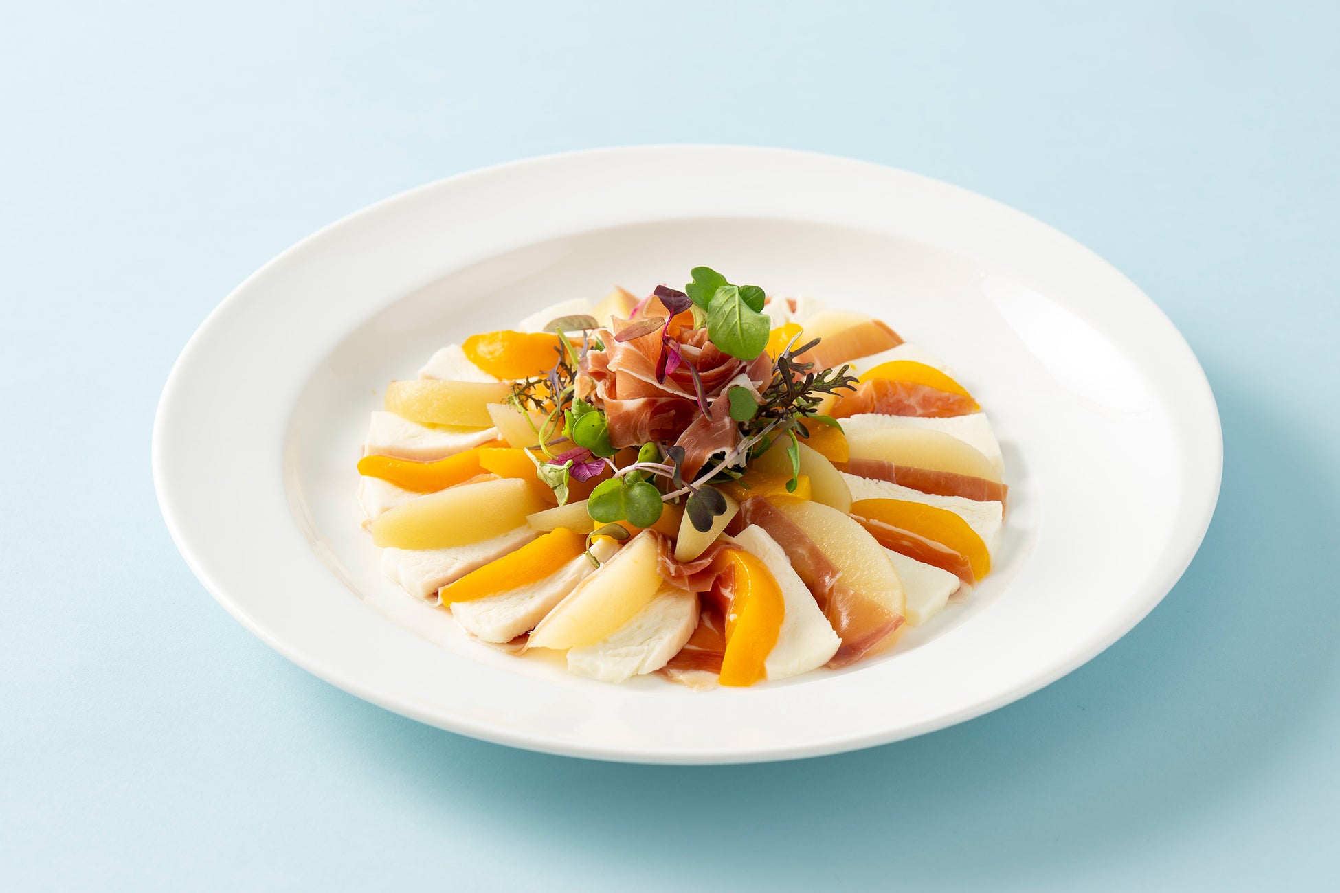 水族館に隣接する「神戸須磨シーワールドホテル」のレストラン「せとうちハーバーレストラン」でも夏の兵庫の味覚をふんだんに使用したメニューをご用意。「瀬戸内蛸と須磨海苔の明石焼き風オムレツ」や、瀬戸内海で水揚げされた流通に乗らない未利用魚を活用した「瀬戸内鮮魚の蒸し物トーチソースねぎ油かけ(もったいない魚)」をはじめ、みずみずしい桃の甘みとクリーミーなモッツァレラの風味が調和する「桃とモッツァレラチーズ生ハムのカプレーゼ」など暑い夏に食欲をそそるメニューを心ゆくまでご堪能いただけます。