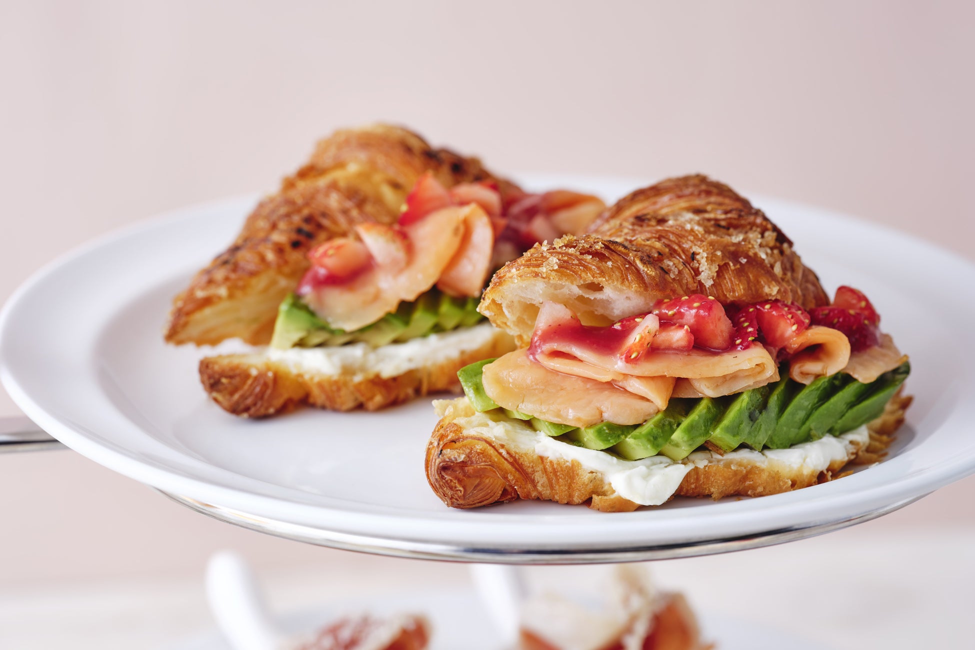 中段にはRITUELの「クロワッサン」をブリュレ仕立てにし、サーモン、アボカド、クリームチーズとベリーソースの甘じょっぱい味付けが癖になる、「クロワッサンサンド」が並びます。
