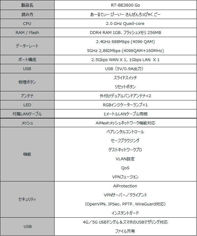 製品詳細:https://www.asus.com/jp/networking-iot-servers/wifi-7/all-series/rt-be3600-go/