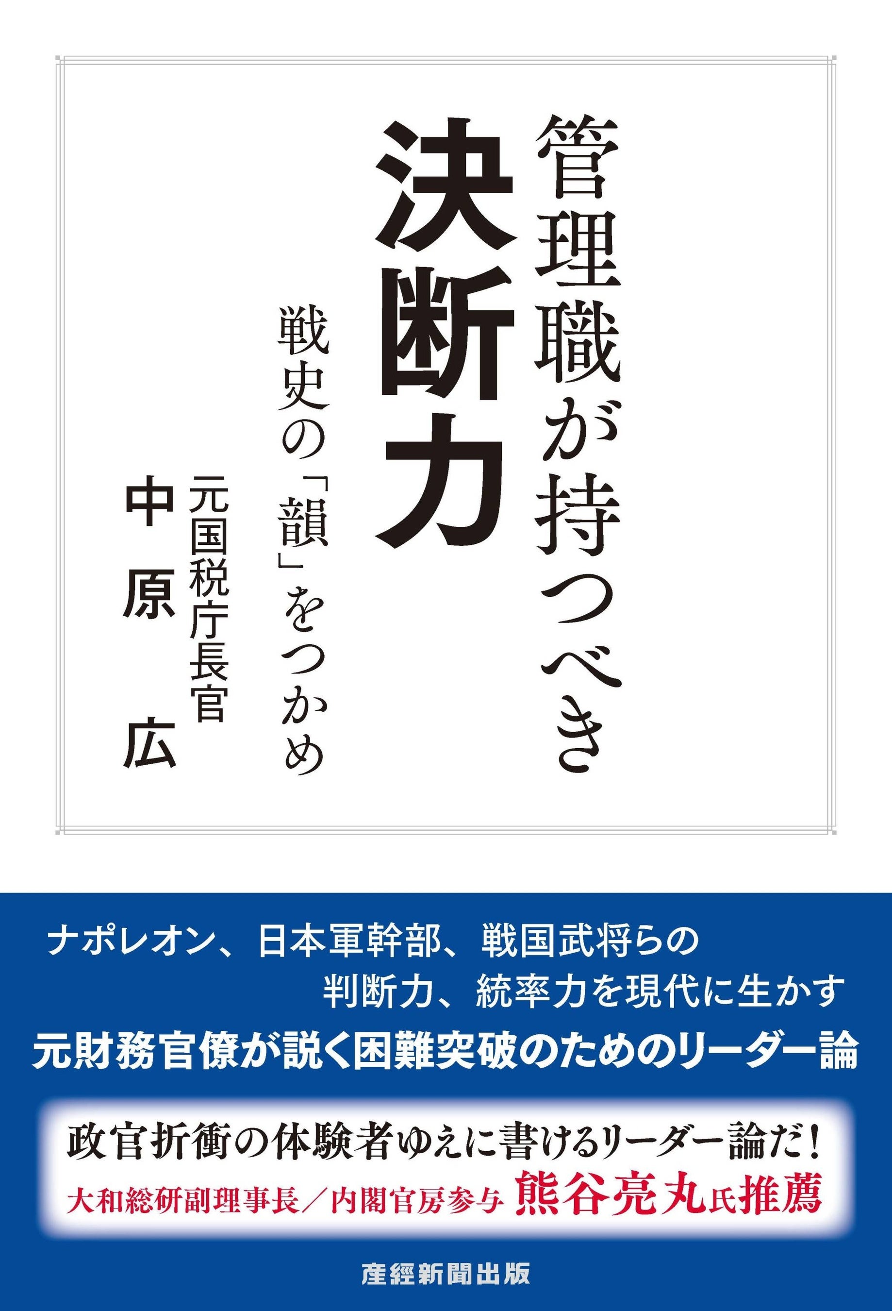 元国税庁長官が説くリーダー論 中原広著 『管理職が持つべき決断力』好評発売中