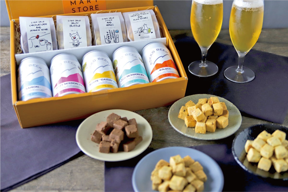 お酒に合う味わいを追及して誕生した、塩味の効いたTOOTH TOOTH の“おつまみサブレ”と六甲ビールのギフトセット。
