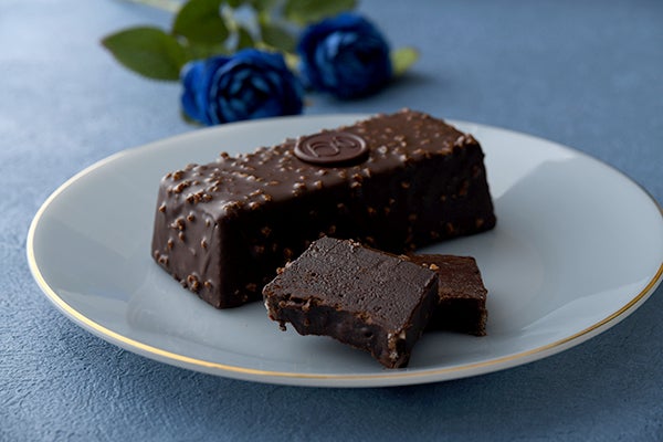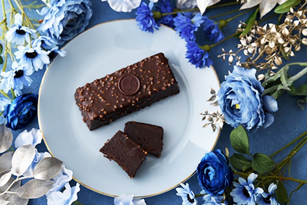 トッピングし、カリッと軽やかな食感がアクセントになっています。チョコレート、卵、砂糖、バターなどシンプルな素材で仕上げた深いビターな味わいです。
