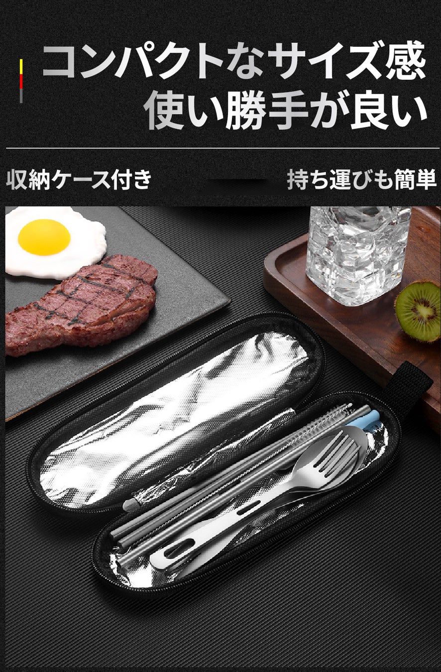持ち運びが可能な防水ケースもついており、アウトドアや旅行など食事のシーンを選ばずどんな時でもすぐに使用することができます。