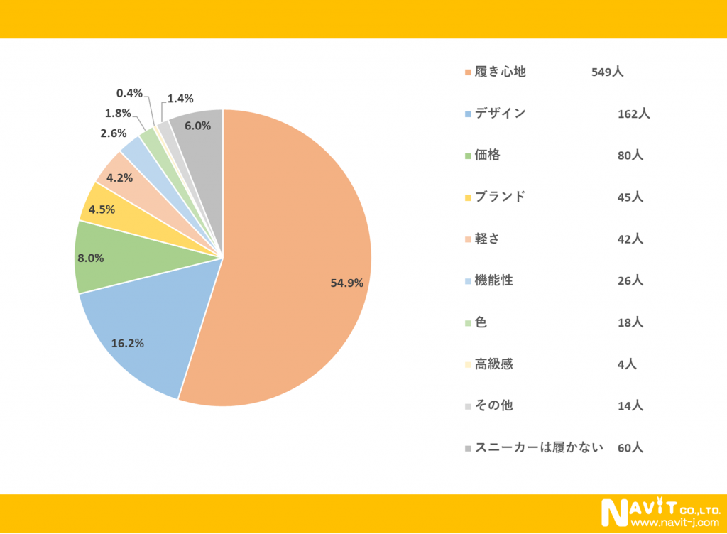 スニーカーを買う時に一番重視することは、「履き心地」が最多