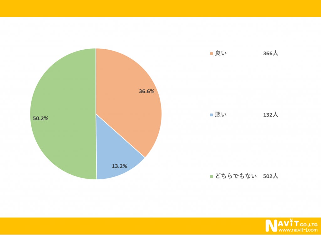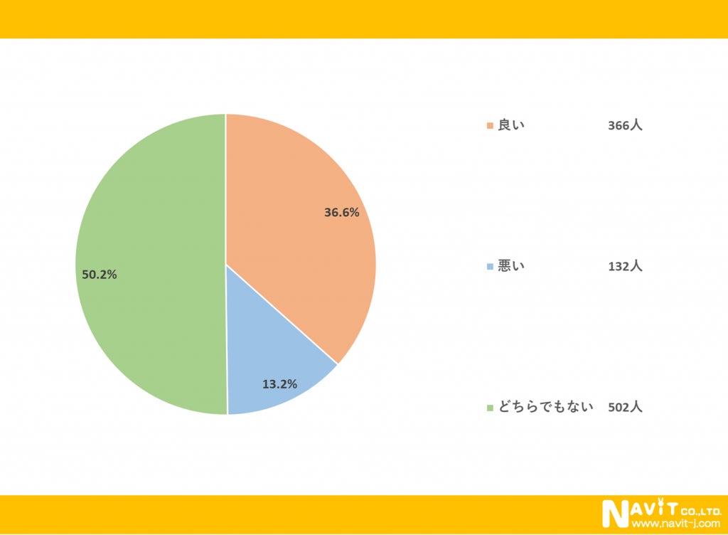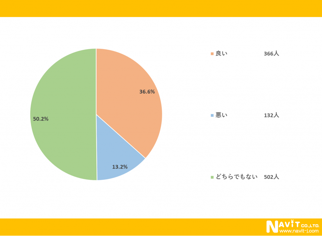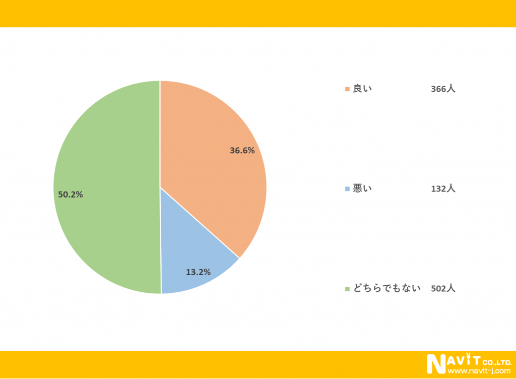 「スーツにスニーカーを合わすことはどう思いますか?」という質問については、「良い」が36.6%、「悪い」が13.2%、「どちらでもない」が50.2%という結果になりました。