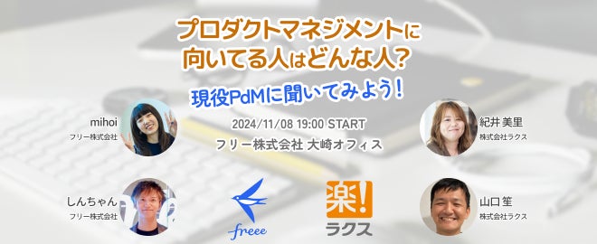 フリー株式会社(本社:東京都品川区、CEO:佐々木大輔、以下「freee」)は株式会社ラクスと共催で11月8日(金)19時から「freee × ラクス プロダクトマネジメントに向いてる人はどんな人?現役PdMに聞いてみよう!」を開催します。