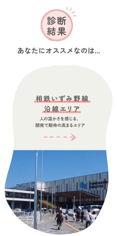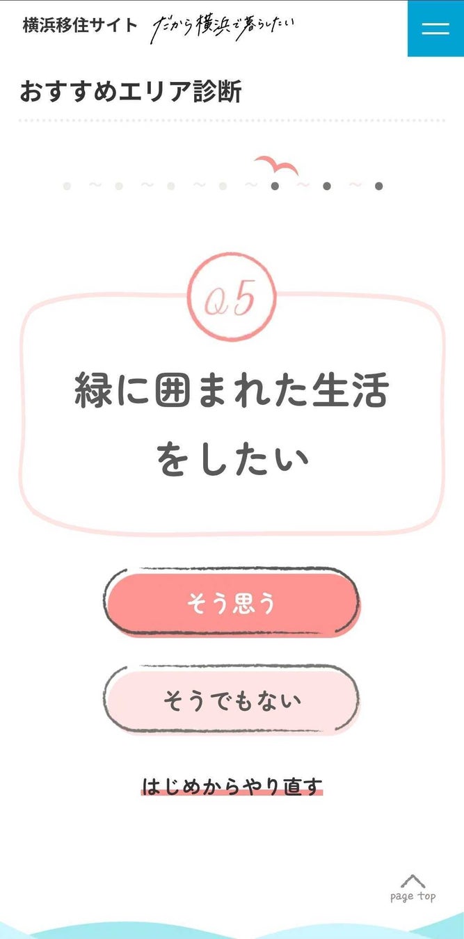「おすすめエリア診断」によって、「自然が多い」「魅力的な商店街がある」など、横浜市内に様々なエリアがあることを知っていただき、移住検討エリアの選択の幅を広げていただくことをねらいとしています。ぜひお試しください。