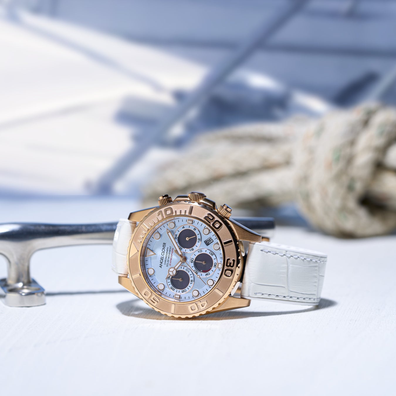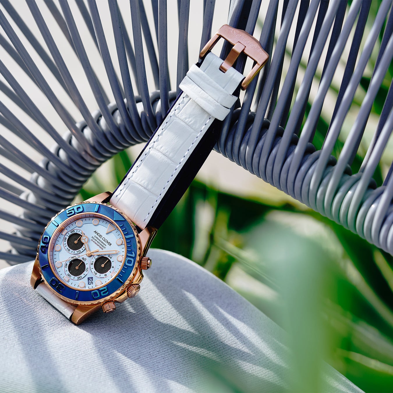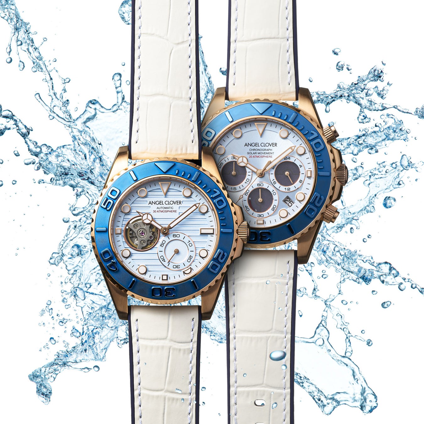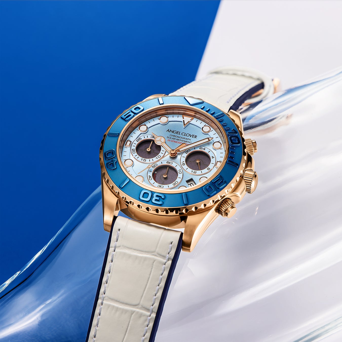 エンジェルクローバーの冠モデルとして絶大な人気を誇る「TIME CRAFT DIVER<タイムクラフト ダイバー>」。高い防水性はもとより、逆回転ベゼルや視認性に優れたダイヤルの個性が際立つ表情が魅力。さらにソーラー駆動とクロノグラフを搭載させた使い勝手と機能性は申し分なし。さらに新作モデルは季節感を存分に感じられるブルー×ホワイトを纏うことで、夏らしい躍動感あるルックスに仕上がっています。