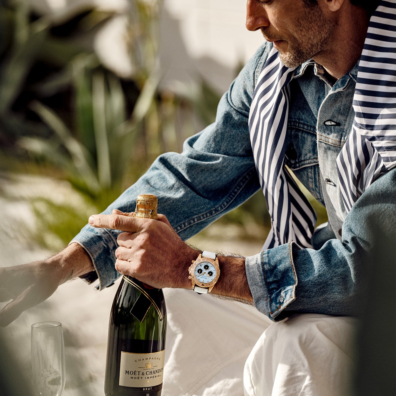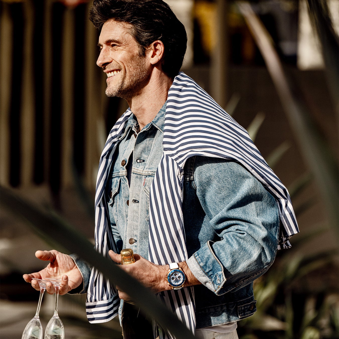 ブルー×ホワイトの夏らしい配色は、手元で確かな存在感を発揮する