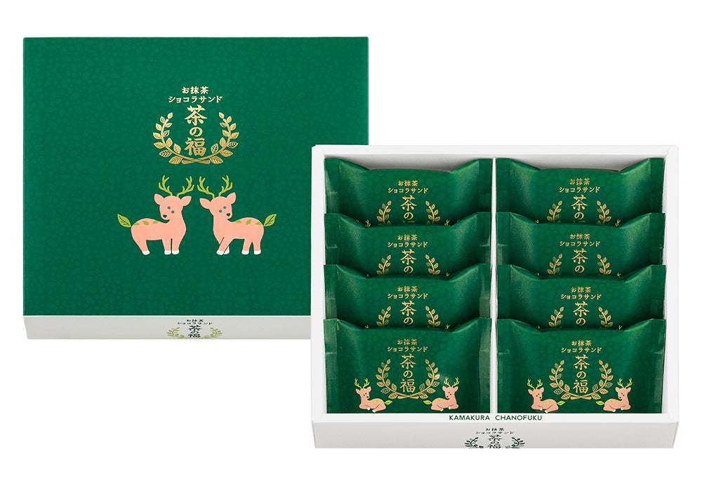 3種のお抹茶スイーツを贅沢にお楽しみ頂ける詰合せです。代表作『お抹茶ショコラサンド 茶の福』。夏限定『お抹茶リーフパイ 茶の音』。抹茶とごまが結ばれた『黒ごま抹茶サンド 茶の結(ゆい)』。「KAMAKURA 茶の福」自慢のお抹茶スイーツを堪能してみてはいかがでしょうか。