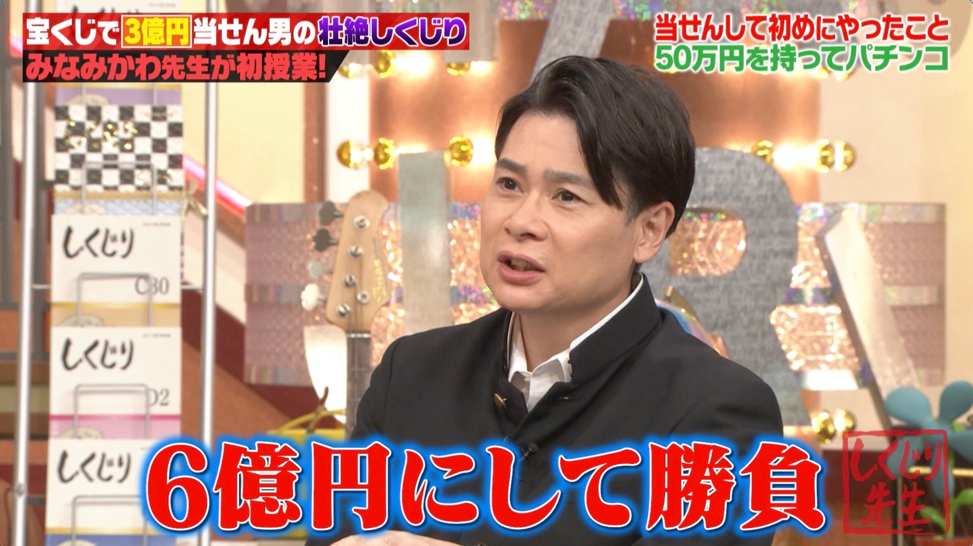 みなみかわが初授業!宝くじ1等当せんするも“女性に貢いで3億2000万円使い果たした男”の壮絶しくじり人生に教室騒然/ノブコブ・吉村の“3億円当せんシミュレーション”とは...?『しくじり先生』