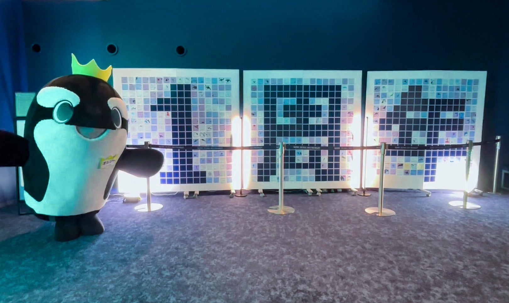 開業1周年を迎えた6月1日(日)15:30のオルカパフォーマンス終了後に記念フォトイベント「みんなでつくろう1周年フォトイベント!シャチも一緒に『#スマスマイル』」を開催し、たくさんのお客様とキャスト、そして2頭のシャチも加わり1周年を祝う記念撮影イベントを行いました。ご参加いただいたお客様には限定オリジナルラバーバンドを配布し、当日は水族館のキャストも同じラバーバンドをつけて会場が一つになりました。