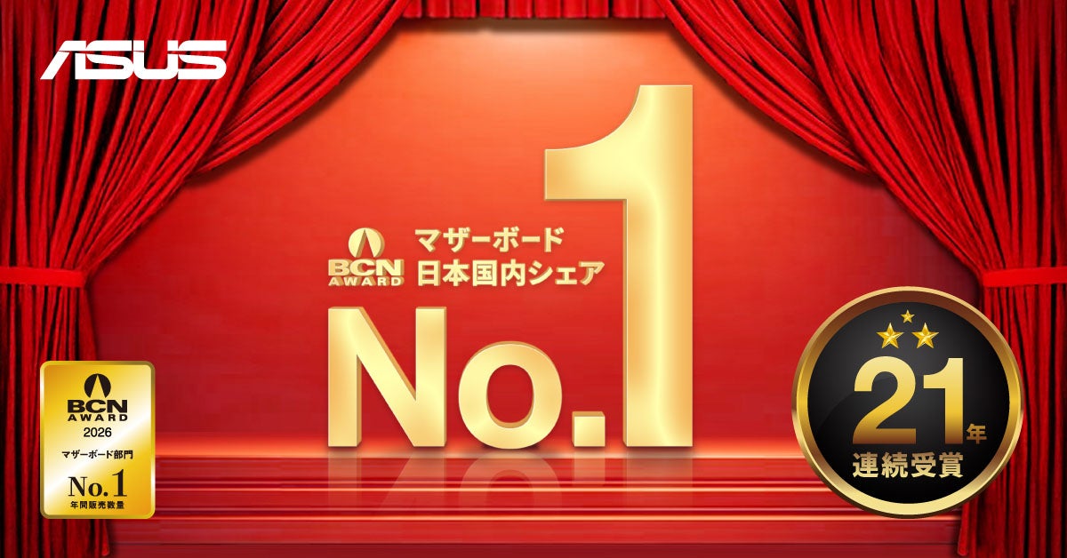 ASUS JAPAN株式会社(以下 ASUS)は、BCN株式会社が主催する「BCN AWARD 2026」において、**「マザーボード部門(21年連続)」「ゲーミングマザーボード部門」「ゲーミング液晶ディスプレイ部門」**の3部門を受賞しました。