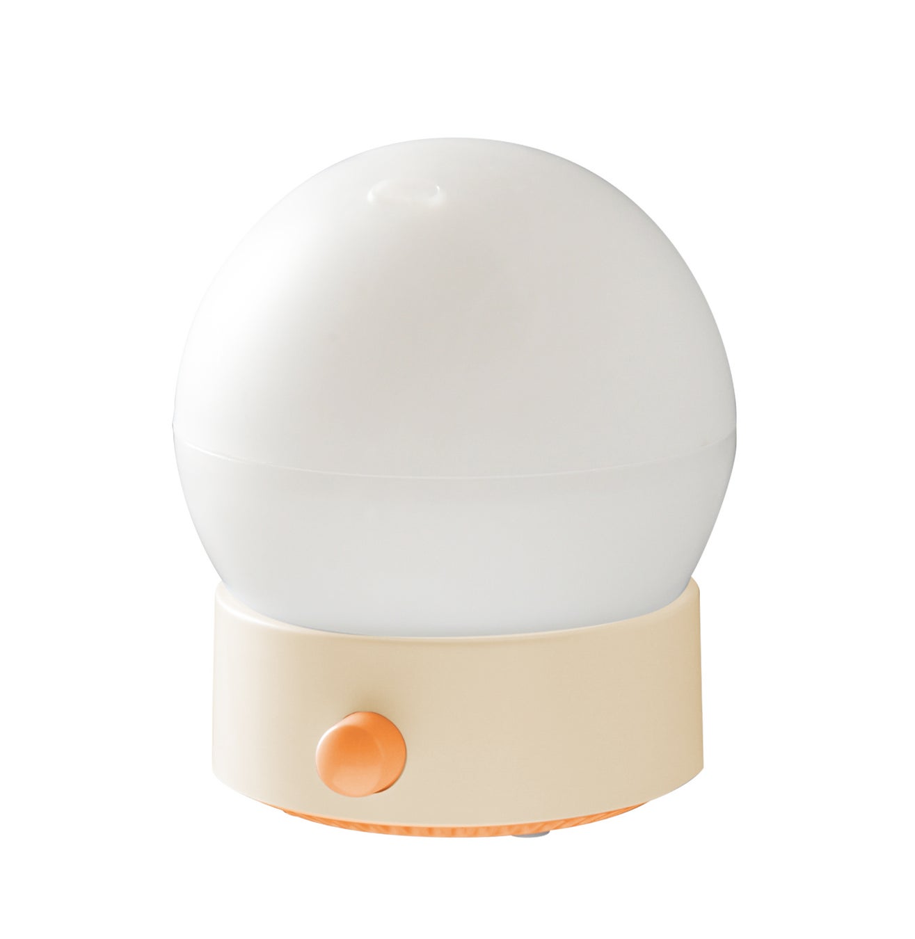 月を思わせる丸いフォルムで、ライトとしても活躍。インテリアのアクセントになるブルーグレーとクリームオレンジの2色展開。