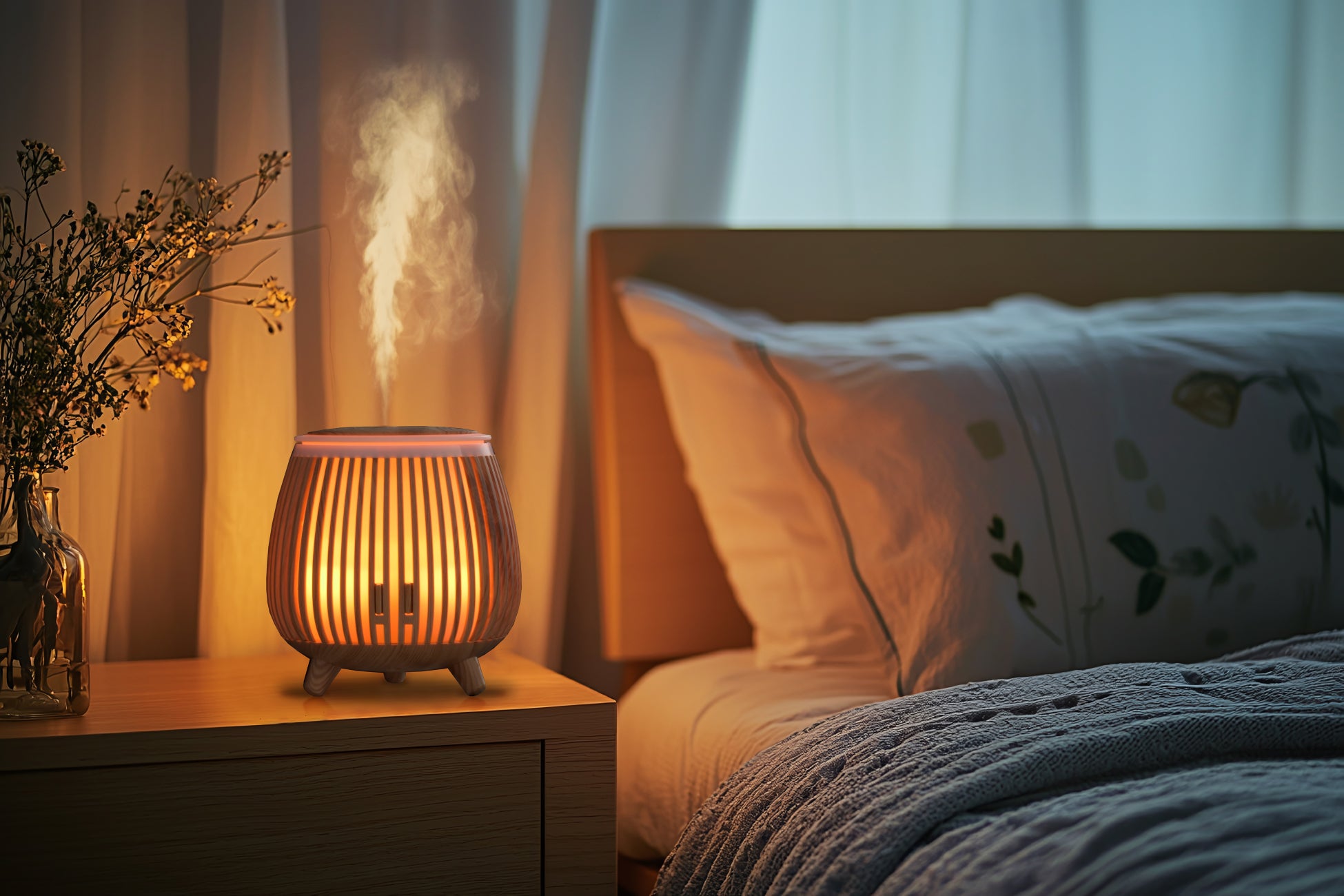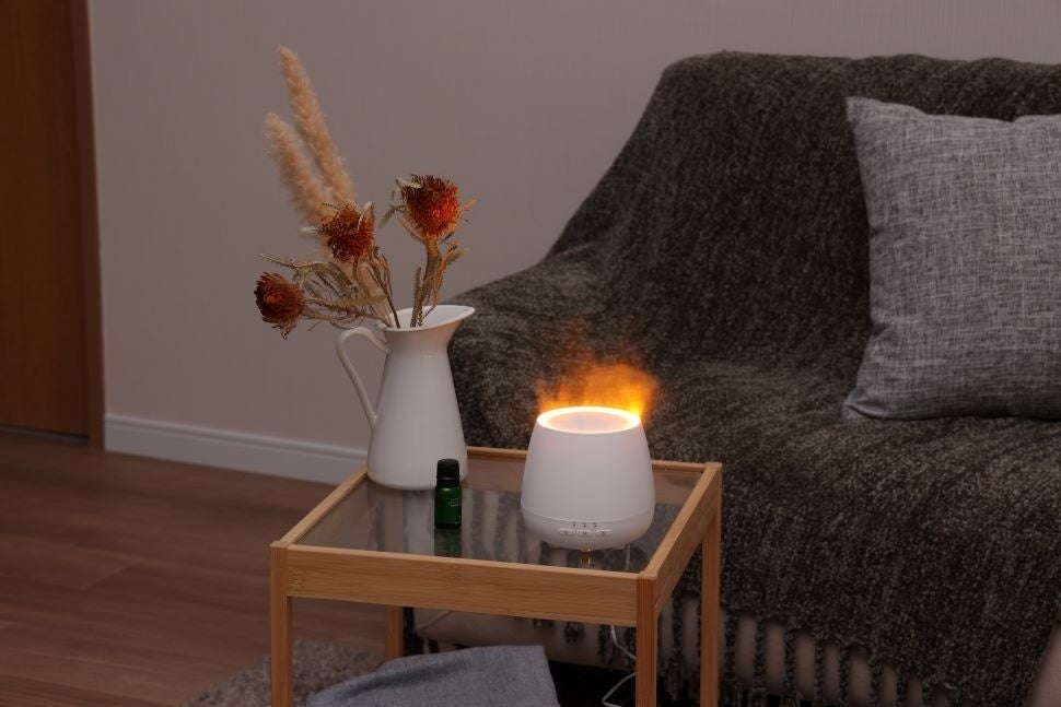 ライトに照らされ、炎のように揺らめく幻想的なミストが楽しめるアロマディフューザー。