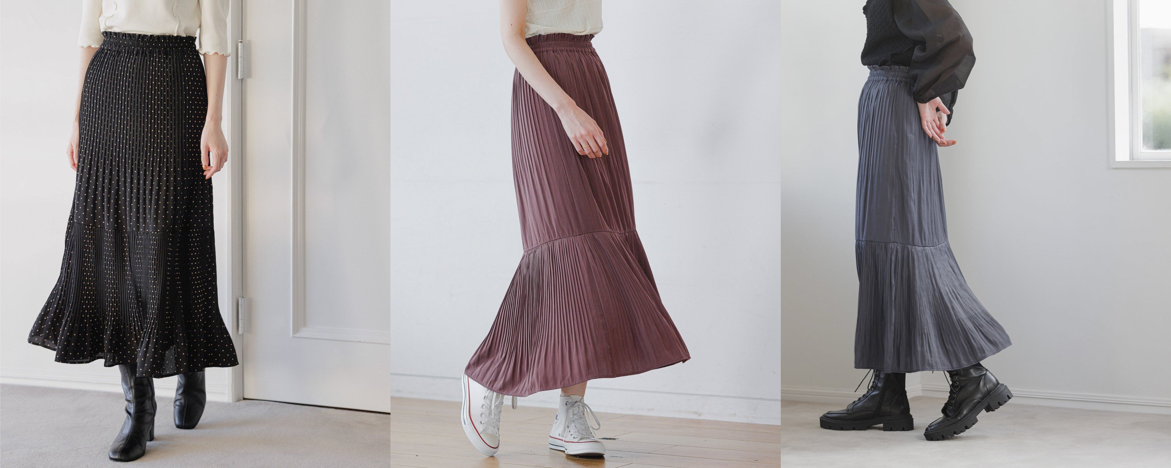 細かいプリーツが施されているので、広がりが少なくスタイルアップも叶います。