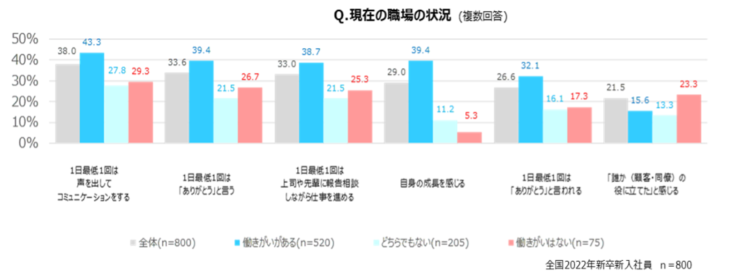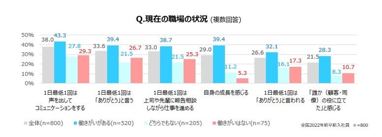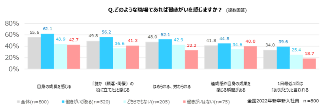 株式会社マイナビ(本社:東京都千代田区、代表取締役 社長執行役員:土屋芳明)が運営する総合転職情報サイト『マイナビ転職』(https://tenshoku.mynavi.jp/)は、2022年に新卒入社した男女(新入社員)800名を対象に行った「2022年新入社員の意識調査」の結果を発表しました。本調査では、新入社員の勤続意向と働きがい、テレワーク廃止の勤続意向への影響などが明らかになりました。