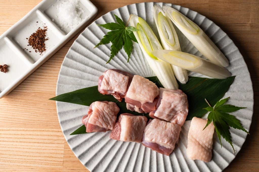 鴨の上質な脂を活かした出汁で味わう「しゃぶしゃぶ」。こちらの”相棒葱”には京野菜の代表格として知られる「九条葱」を合わせています。