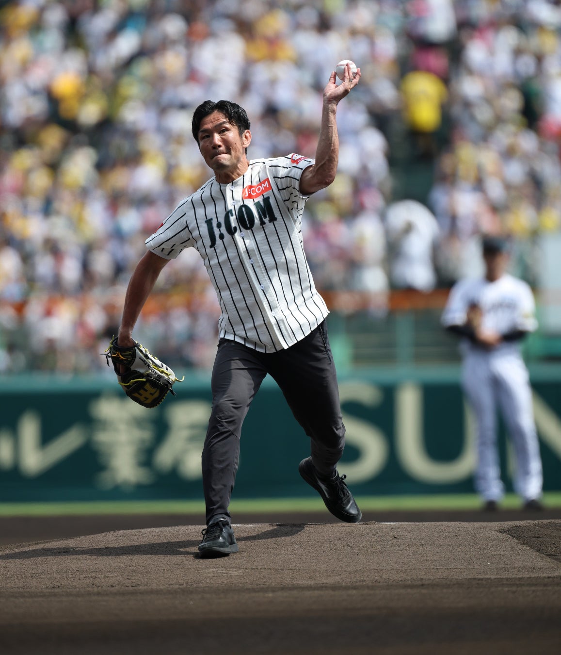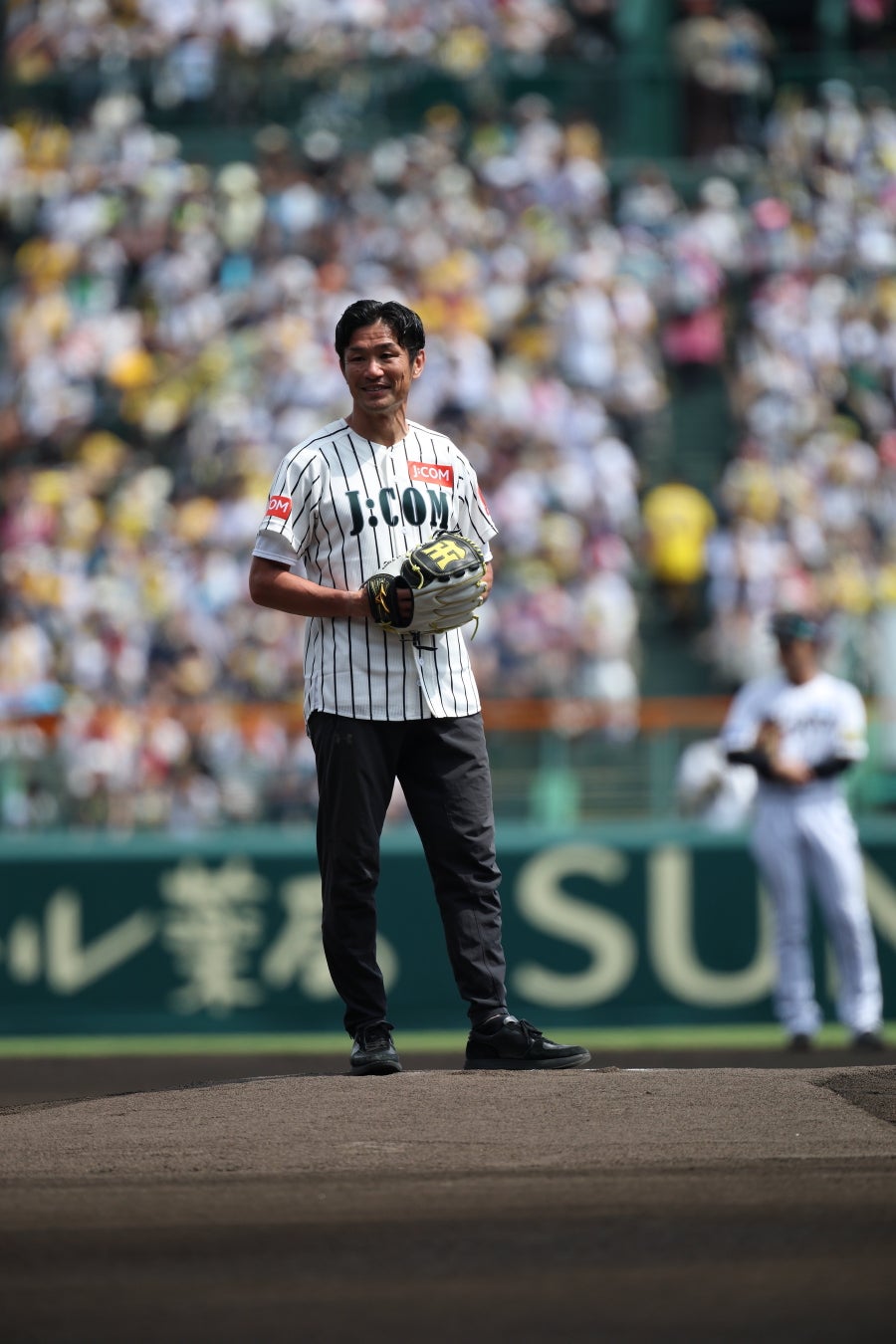始球式には、J:COMのコミュニティチャンネル「J:テレ※」の番組『パラスポチアーズ!~パラアスリート全力応援~』に出演する、元ラグビー日本代表主将 廣瀬俊朗さんが阪神甲子園球場のマウンドに初登場。廣瀬俊朗さんは、阪神タイガースファンの想いを込めた全力投球を宣言。ダイナミックな投球フォームから繰り出した球は、山なりの軌道を描きバッター背後を通ったものの、ノーバウンドでキャッチャーミットに収まり、満員の会場を熱く沸かせました。始球式の模様は、J:COM公式X(@jcom_osakaなど)で近日中に公開予定です。