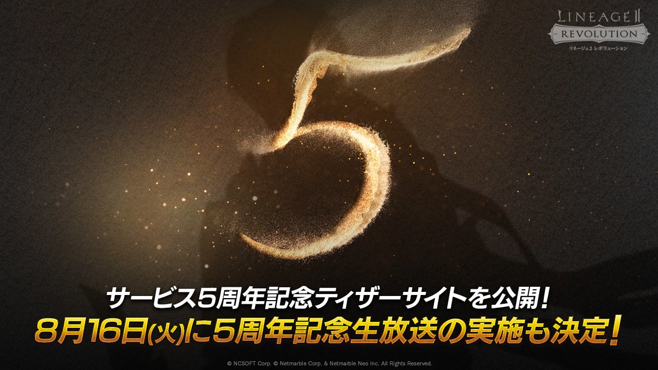 『リネージュ2 レボリューション』サービス5周年記念ティザーサイトを公開!8月16日に5周年記念生放送の実施も決定!
